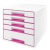 Irattároló, műanyag, 5 fiókos, LEITZ "Wow Cube", fehér/rózsaszín