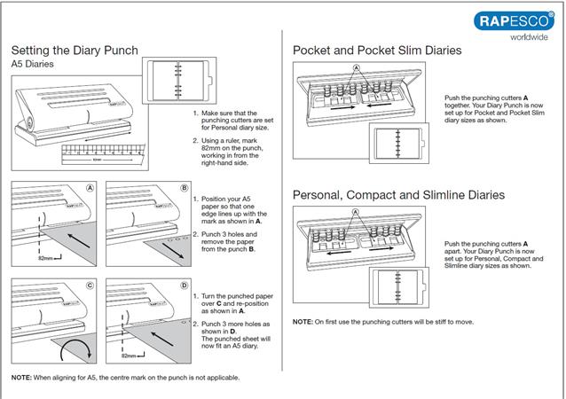 A Diary Punch egy kompakt, állítható lyukasztó.