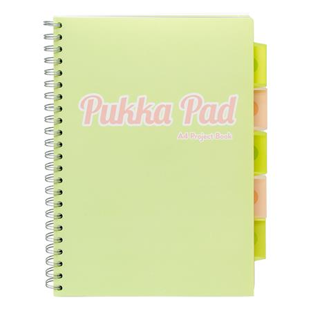 Spirálfüzet, A4, vonalas, 100 lap, PUKKA PAD "Pastel project book", vegyes szín