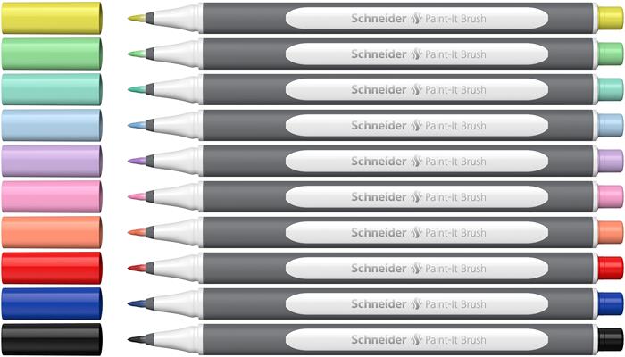 Ecsetirón készlet, hajlékony heggyel, SCHNEIDER "Paint-It 070", 10 különböző szín