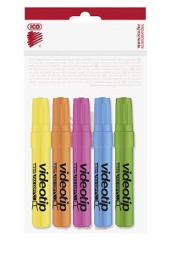 Szövegkiemelő készlet, 1-4 mm, ICO "Videotip", 5 különböző szín