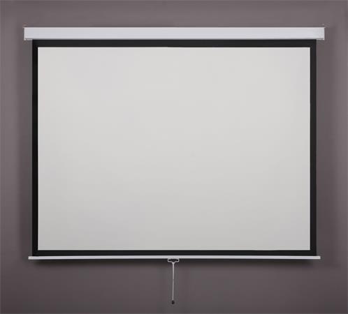kézi mozgatású, rolós vetítővászon, lassított visszahúzású mechanikával
