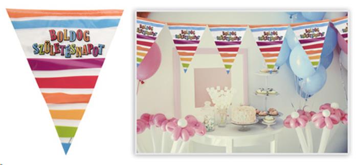 KezdőlapÜzemeltetésAjándékok és party kellékekParty kellékekZászló, 3,6 m, műanyag, "Boldog Születésnapot, csíkos-pöttyös"