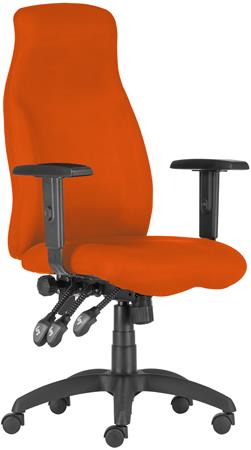 Menedzserszék, szövetborítás, fekete lábkereszt, magas háttámla, "Hufo", narancssárga