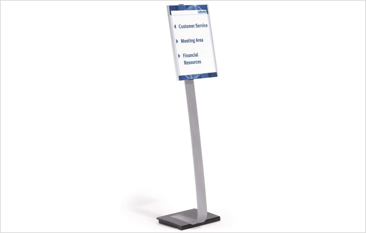 Az ajtótáblák mellett a padlóállványok is alapvető szerepet játszanak a tájékozódásban. Ha olyan padlóállványt választ, amely designban illeszkedik az ajtótáblához, egységes és harmonikus összképet alakíthat ki, amely növeli a vendégek elégedettségét.