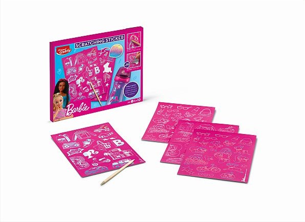 Az ámulatbaejtő „Barbie Scratching” képkarcoló készlet remek kikapcsolódást nyújt. A gyerekek élvezhetik a matricák karcolását fa pálcával, melynek köszönhetően egy csodás holografikus hatás jelenik meg a matricákon. A készlet több, mint 70 matricát tartalmaz, mellyel egyedivé tehetik kulacsukat, füzetüket, amit csak szeretnének, hiszen nem szabhatunk gátat kreativitásuknak.