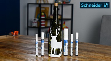 A kreatív munkákhoz elengedhetetlenek a SCHNEIDER dekormarkerek, hiszen könnyedén használhatjuk különböző méretű üvegpalackok dekorálásához. A „Paint-It 310”„Paint- It 320” és „Paint- It 330” akril markerek különböző méretű és formájú hegyeinek köszönhetően szinte bármilyen felületen alkalmazhatók, legyen az fa, fém, papír, karton vagy akár üveg.
