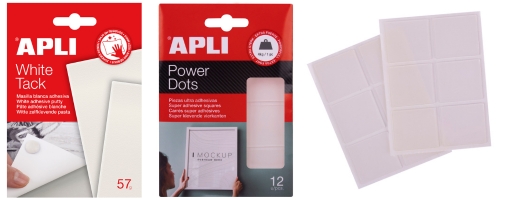 Az öntapadós gyurmaragasztó alkalmas fotók, plakátok, rajzok vagy egyéb dekorációk rögzítésére, akárcsak az extra erős ragasztó négyzetek. Közös tulajdonságuk, hogy könnyen visszaszedhetők, így többször felhasználhatók.