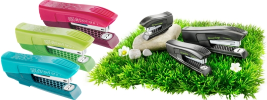 A környezettudatosságot szem előtt tartva született meg a „Greenlogic” szériába tartozó, 97%-ban újrahasznosított műanyagból készült tűzőgép. Kék, zöld, lila, és fekete színben elérhető.