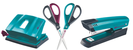 Az „Essentials” termékcsalád lélegzetelállító türkiz színe rabul ejt. Tűzőgép, lyukasztó, valamint olló (türkiz vagy padlizsán) alkotja a kollekciót.