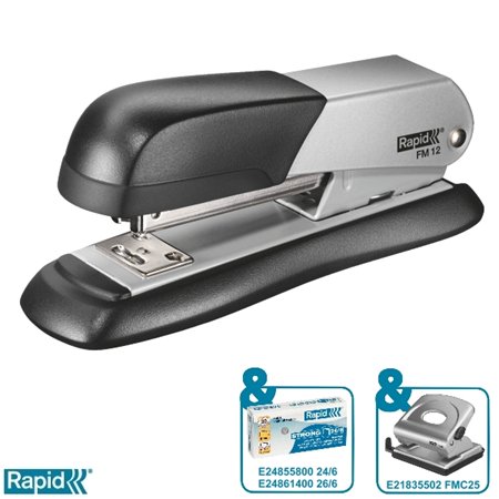 Tűzőgép, 24/6, 26/6, 25 lap, RAPID "FM12", ezüst