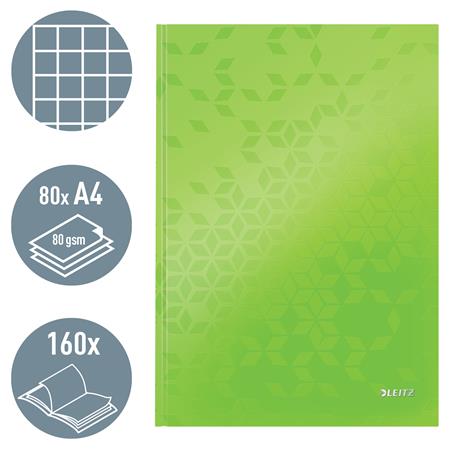 Beíró, A4, kockás, 80 lap, keményfedeles, LEITZ "Wow", zöld
