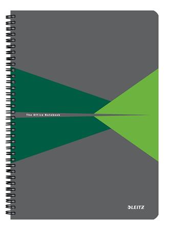 Spirálfüzet, A4, kockás, 90 lap, PP borító, LEITZ "Office", szürke-zöld