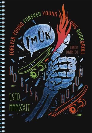 Spirálfüzet, A5, kockás, 80 lap, SHKOLYARYK " Skate board", vegyes