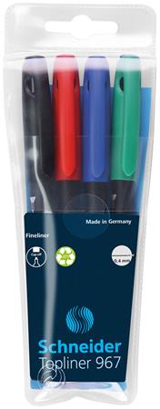 Tűfilc készlet, 0,4 mm, SCHNEIDER "Topliner 967", 4 különböző szín