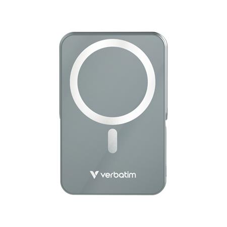 Power bank, mágneses (vezeték nélküli), 10.000mAh, VERBATIM "Charge n Go", szürke