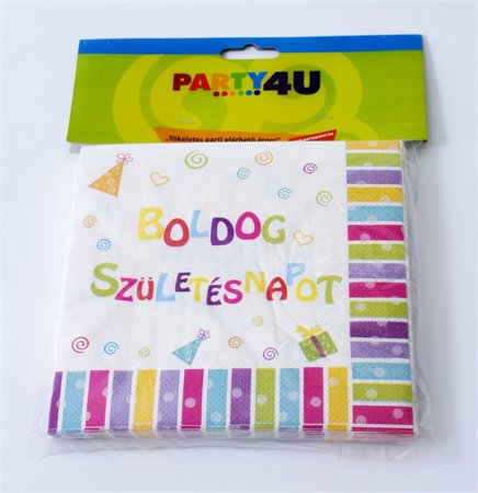 Szalvéta, 33x33 cm, "Boldog születésnapot"