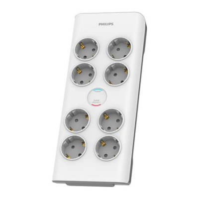 Elosztósor, 8 csatlakozóaljzat, túlfeszültség-védelemmel, 2 m kábel, PHILIPS, fehér
