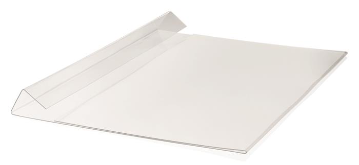 -átlátszó PET kemény fóliából készült, hajtással ellátott irattartó tok, mely alkalmas kartondobozok, dobozok vagy más tárolóedények fölé függesztésre